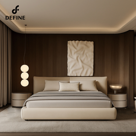Tam koordineli tasarımcı-bir komple birim Modern yatak odası mobilyası Set olarak teslim edilen küratörlü koleksiyon